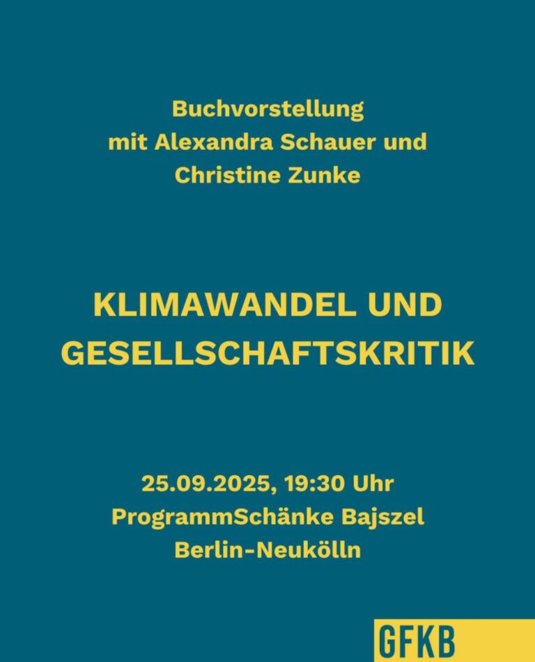 Am 25.09.25 um 19:30 Uhr bei uns: Buchpremiere „Klimawandel und Gesellschaftskritik“ mit Alexandra Schauer und Christine Zunke Die Naturwissenschaften gelten als zentraler Stichwortgeber …