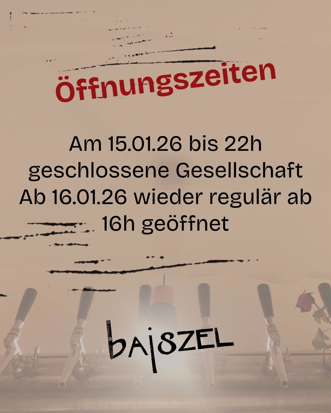 Am 15.01.26 bis 22h geschlossene Gesellschaft Ab 16.01.26 wieder regulär ab 16h geöffnet
