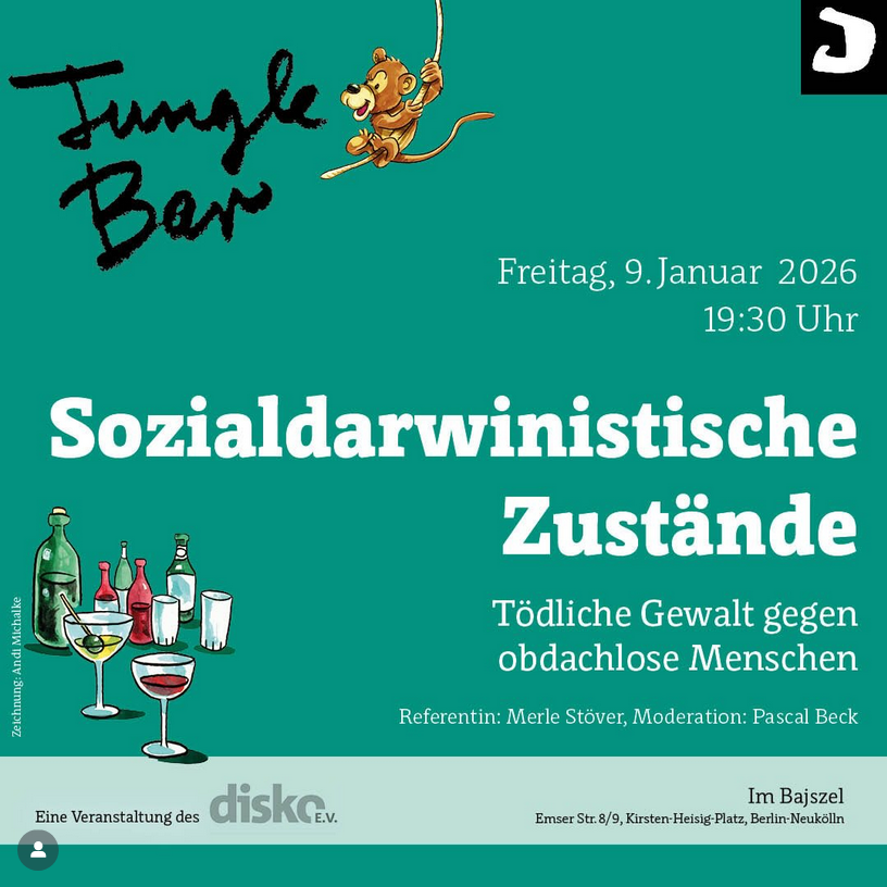 09.01.26 Jungle Bar: Sozialdarwinistische Zustände – Tödliche Gewalt gegen obdachlose Menschen