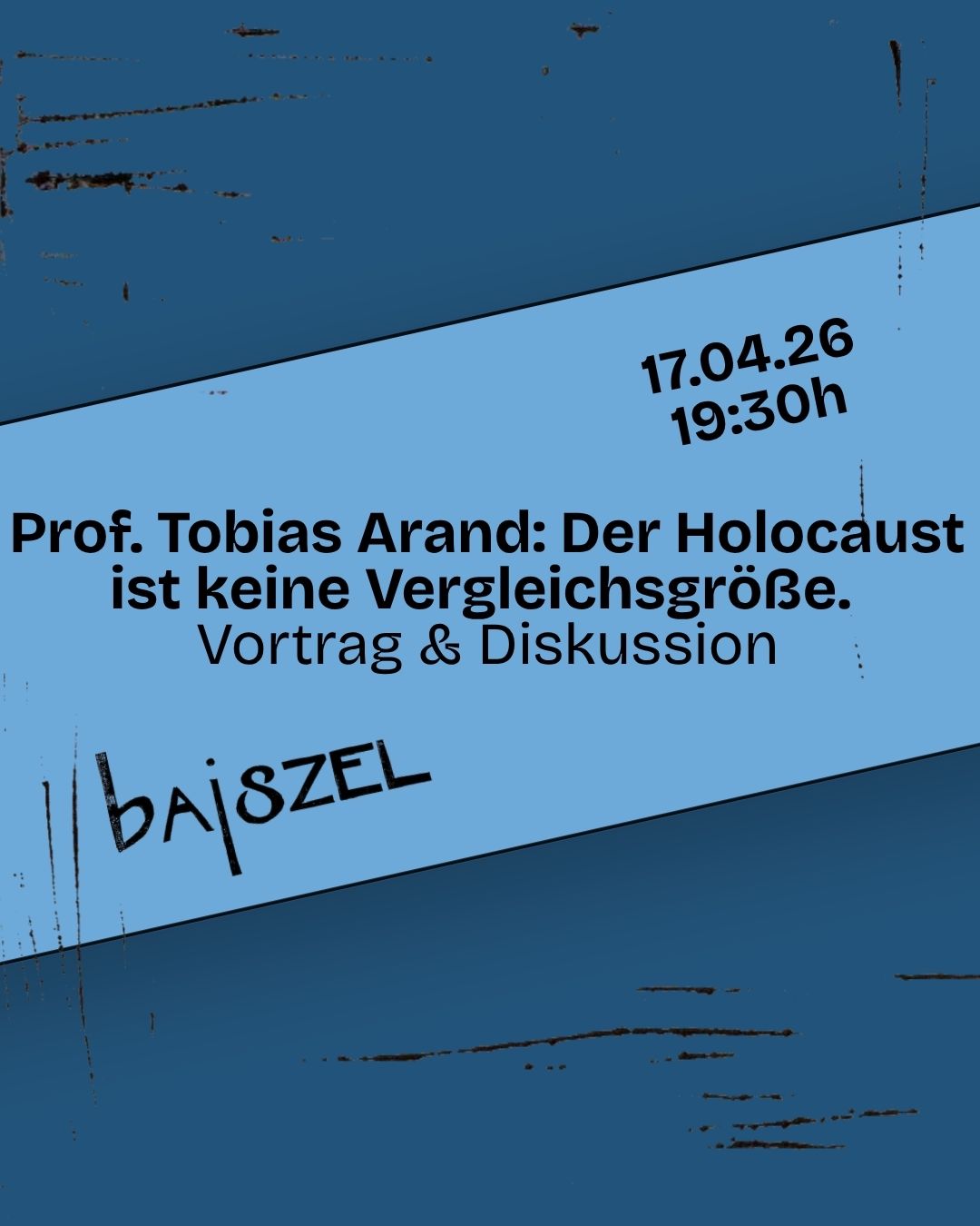 Freitag, 17.04.26 um 19:30 Uhr im Bajszel:Prof. Tobias Arand – Worüber sprechen wir eigentlich? Der Holocaust ist keine Vergleichsgröße. Vortrag …