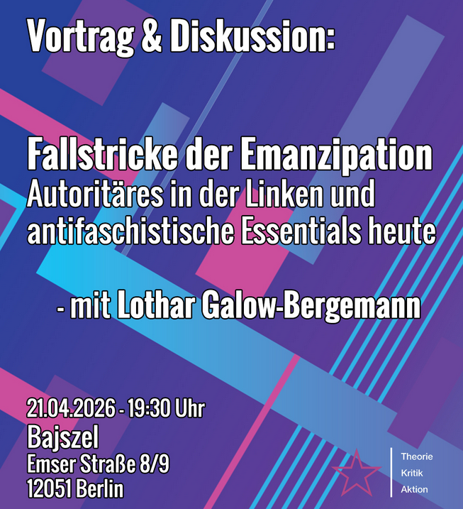 21.04.26: Theorie, Kritik & Aktion – Fallschtricke der Emanzipation. Mit Lothar Galow-Bergemann