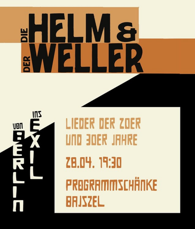 Am 28.04.26 um 19:30h bei uns: Die Helm und der Weller: Von Berlin ins Exil.Ein Liederabend mit Songs der 1920er …