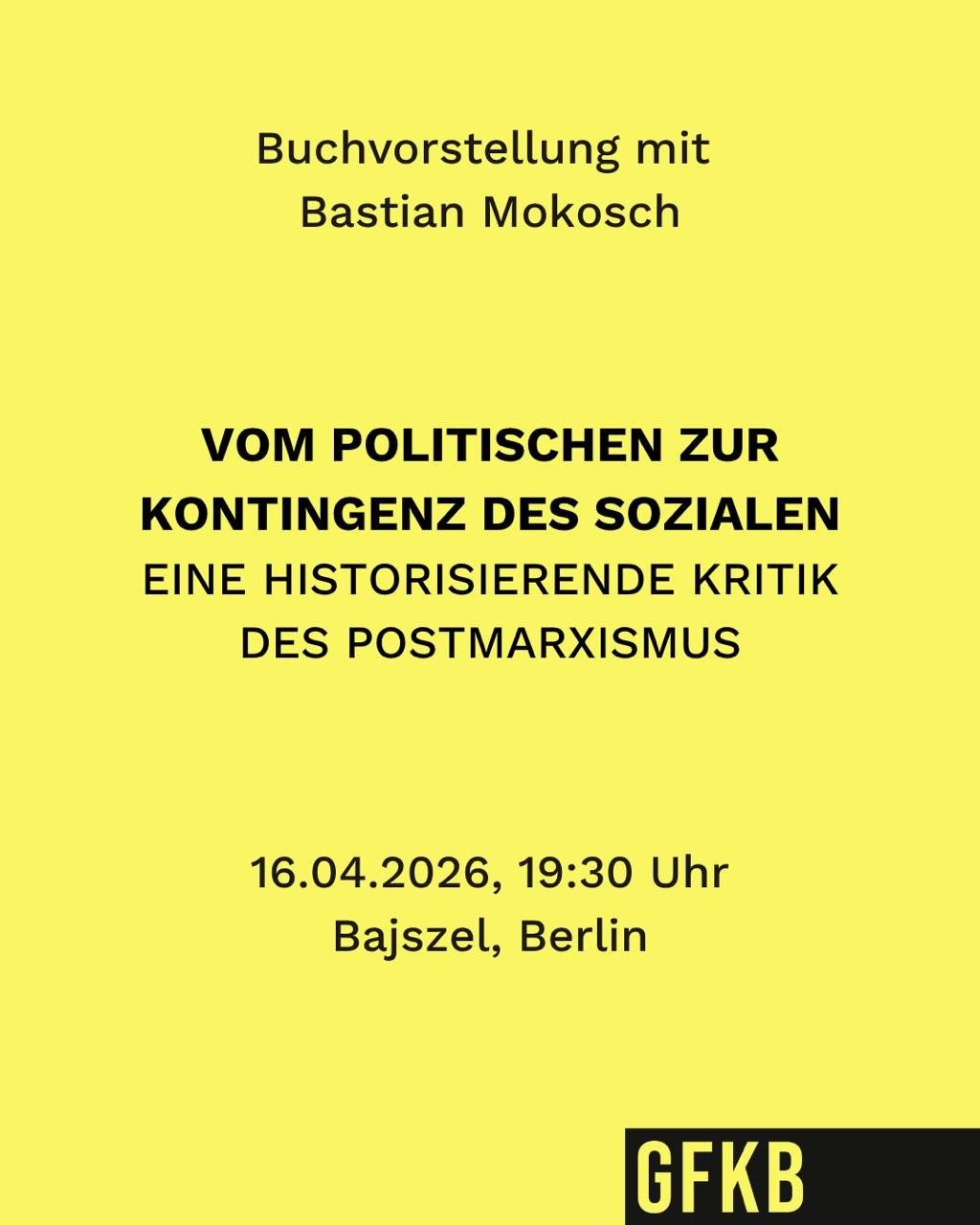 Am 16.04.26 um 19:30 Uhr bei uns:Kritik des PostmarxismusBuchvorstellung zu „Vom Politischen zur Kontingenz des Sozialen. Eine historisierende Kritik des …
